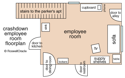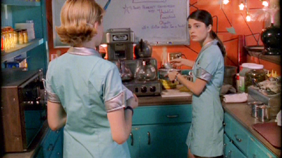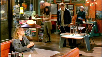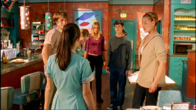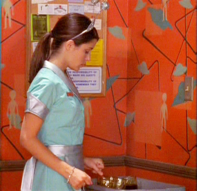 Liz - is working as a waitress at Crashdown Cafe from the begining of the 'Pilot'. In the episode 'The Balance' Maria mentions that Liz is the Manager. In the episode 'Skin & Bones' Liz takes a job as an assistant for Congresswoman Vanessa Whitaker, and quits the Crashdown. After Whitaker's death, Liz returns to her job at the Crashdown in the episode 'Wipeout'. |