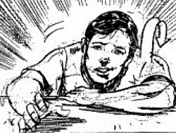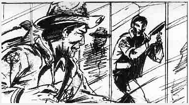 Storyboards are hand-drawn sketches (sort of a comic book style) of how a director wants a scene to be shot. They show the rough scenes, camera angles, what gets included in the frame, and the pace of the action.
